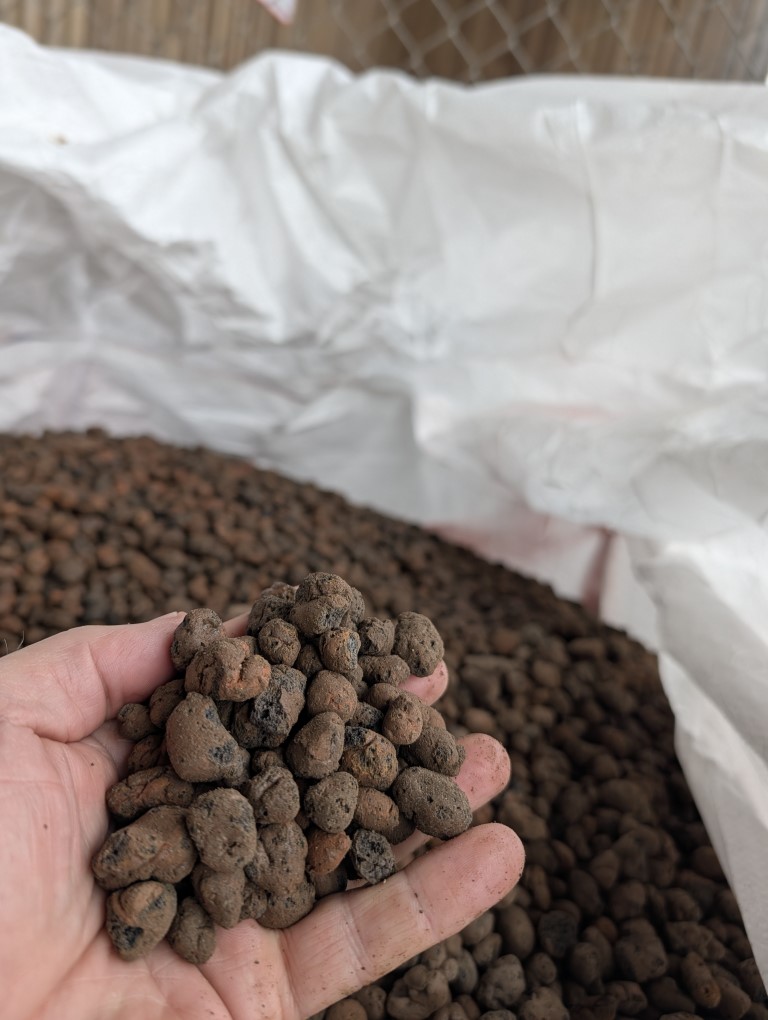 I BIG BAGS med ca. 500ltr. rensede tørre LECA NØDDER i hver ….
